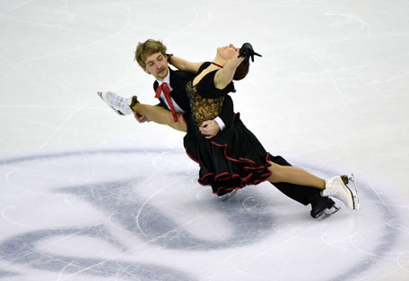 Barbora Silna and Juri Kurakin of Austria compete in the Ice dance short dance event in the 2015 ISU World Figure Skating Championships at the Shanghai Oriental Sports Center in Shanghai on March 25, 2015. (AFP)